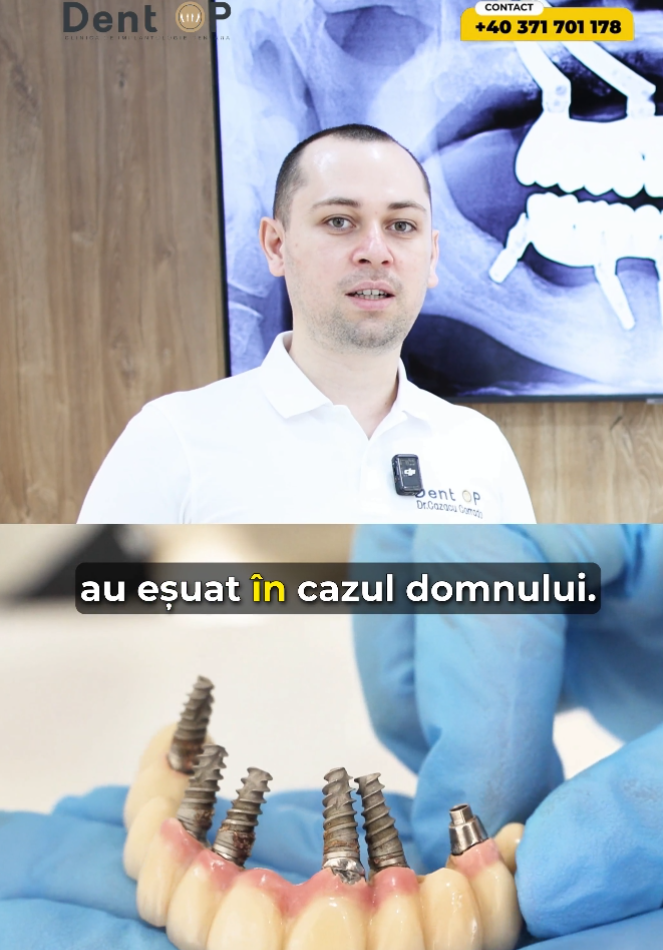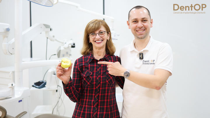 Ultima programare este cea în care montăm lucrările finale, care sunt realizate din zirconiu, pe structură de titan. La nivel internațional, este considerat cel mai bun tip de lucrare. Lucrările realizate în clinicile DentOP sunt digitale și sunt lucrăși înșurubate, ceea ce înseamnă că o dată la 6 luni se poate scoate în cabinet și igieniza.