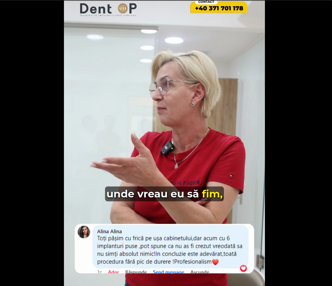 Numele meu este Gabriela Cernatescu și în urmă cu 8 luni am avut o intervenție chirurgicală la clinica Dentop. Menționez ca eu am venit din Cluj la această clinică ptr ca acolo nimeni nu m-a putut convinge sa încep procedurile . L-am urmărit pe dl dr Cazacu pe Facebook, la tv ..etc , și am decis să fac o programare . De la prima vizită am simțit ca dl dr Cazacu este omul în care am încredere să-mi redea zâmbetul mult dorit . La 3 zile de la prima vizită a avut loc operația , 7 implanturi , adiție de os și sinus lift . Cel mai tare a fost faptul ca nu am simțit nici o durere în timpul intervenției și nici după , eu care tremuram în scaun. Cele 6 luni au trecut oarecum repede .. acum mă bucur de noul meu zâmbet și pot mânca orice ! Dantura mea este perfectă datorita dr Cazacu și dr Joni Muka , care este de asemenea un profesionist și care s-a asigurat ca totul este perfect ( am avut 4 probe) 🤣până la dantură finală . Recomand clinica tuturor .. sunt top from the top ! Mulțumesc tuturor din acea clinică și mergeți dragilor cu cea mai mare încredere ! Sărbători fericite! ❤️🥂