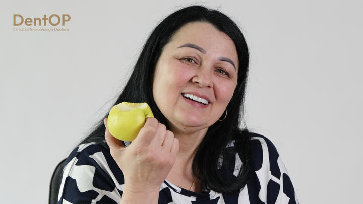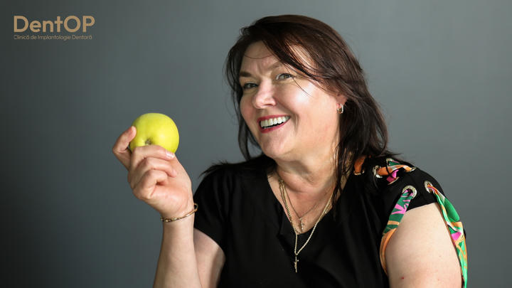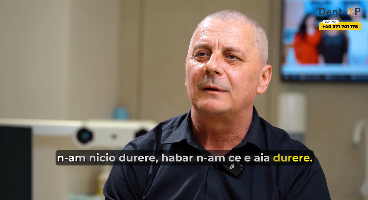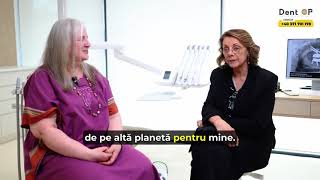 Eu am vazut pe Facebook o postare a domnului doctor Corrado si am vazut ca interventiile se realizeaza sub Sedare Constienta. Imediat m-am hotarat sa vin la el. Am vazut mai multe clinici, dar am simtit eu ca la DentOP e locul meu. Am venit din Anglia, in mai am avut interventia chirurgicala. Nu stiu nimic din ce s-a intamplat in interventie, pur si simplu am dormit. Nu am avut nicio durere in interventie, dar nici dupa. Acum am venit pentru montarea lucrarilor finale, care sunt SUPERBE! Imi plac foarte mult si abia astept sa mananc. Imi place totul la aceasta dantura, dintii nu sunt lungi, nu sunt prea albi. Sunt SUPERBI!