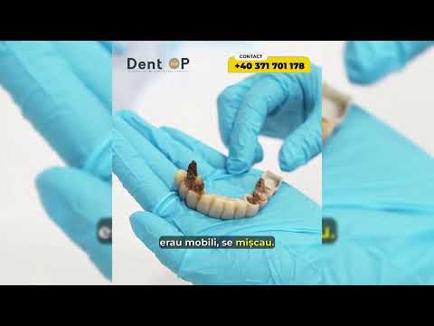 Ultima etapă, cea a lucrărilor finale presupune inserarea danturii după 4-6 luni, timp în care pacientul a purtat lucrări provizorii.În cadrul clinicii DentOP lucrăm cu dinți din zirconiu fixați pe 2 tipuri de structuri, care se diferențiază prin greutate și confort sporit în cazul lucrării din titan. După cum puteți vedea în videoclipul de mai sus, lucrarea din zirconiu pe titan este de două ori mai ușoară.